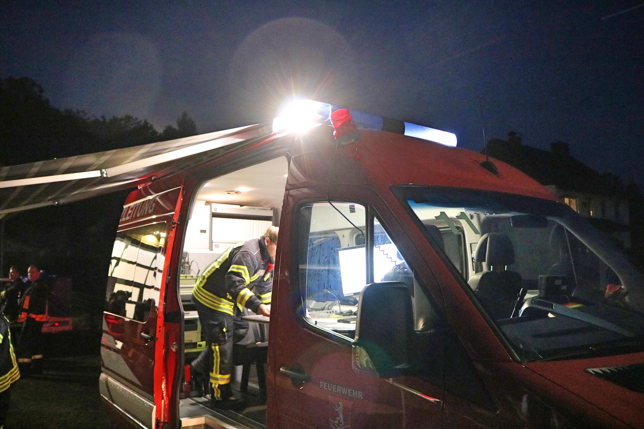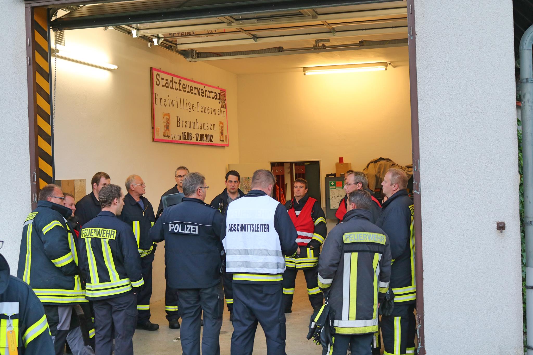 Zu Beginn wurde eine Lagebesprechung zwischen den Einsatzleitern der Polizei, Feuerwehr und Rettungshundestaffel durchgeführt, um die Suchgebiete für die einzelnen Teams einzuteilen. Der ELW 1 stellte Kartenmaterial für das Suchgebiet zur Verfügung und war Des Weiteren für die Information und Kommunikation zuständig. Zur Unterstützung in der Abenddämmerung wurde die Wärmebildkamera der Kernstadtwehr dazu gefordert. Nach geraumer Zeit teilten sich die Teams auf und begannen mit der Suche. Die Gruppen durchsuchten das Waldgebiet mittels Menschenkette und Rettungshunden, nach den vermissten Personen. Gegen 23:15 Uhr war die Übungslage beendet, somit konnten alle eingesetzten Einsatzkräfte zum Bereitstellungsplatz am Gerätehaus Braunhausen zurückkehren.